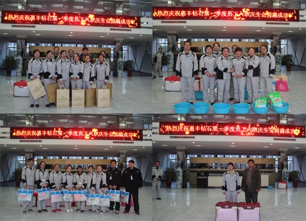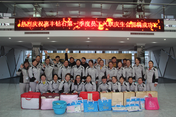 參會(huì)30多位壽星,入職時(shí)間最短的1個(gè)月,最長(zhǎng)的15年。根據(jù)入職年限不同,公司為每一位壽星準(zhǔn)備了生日禮品。高檔棉被、床品四件套、冰絲三件套、純棉被罩、臉盆、牙膏等豐富禮品。