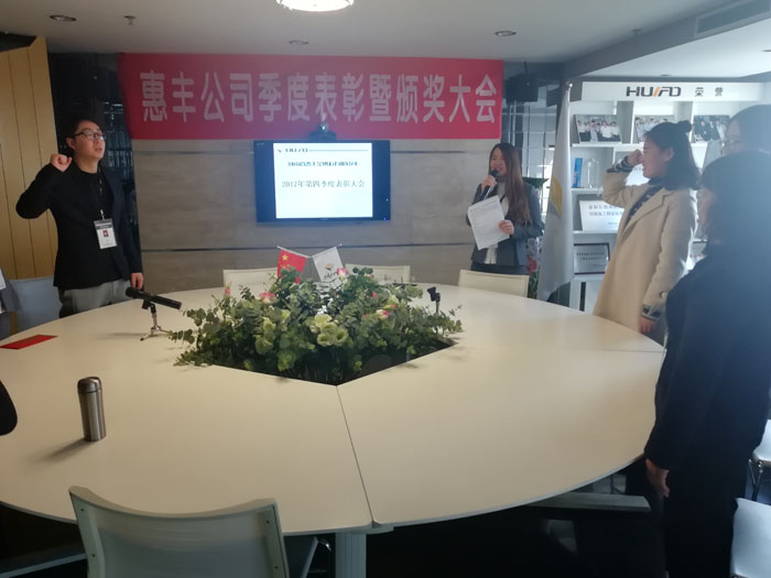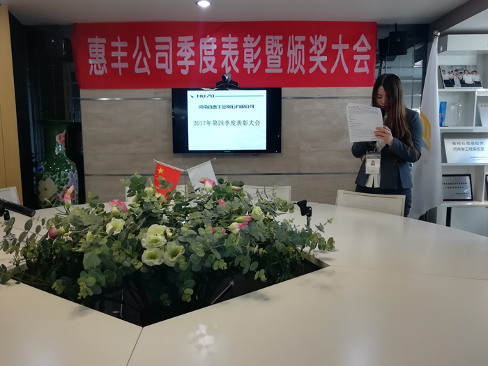 2018年1月31日下午,河南省惠豐金剛石有限公司全體員工齊聚會議室,召開了2017年第四季度表彰大會,以對2017年第四季度表現(xiàn)優(yōu)異的各位員工進行表彰鼓勵,繼續(xù)弘揚積極向上、學習奮進的企業(yè)文化,打造公司優(yōu)秀平臺,成就全體惠豐人的偉大夢想!