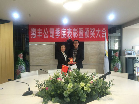 一元復始,萬象更新,站在2016年新起點上,我們秉承惠豐公司企業(yè)文化,惠豐公司總部如期召開2015年第四季度表彰大會?! ”敬未髸苍O有三個獎項:品牌積分獎,改善提案獎,成長文化案例分享獎,這些成績的取得離不開他們的的努力與付出,同時也共同見證了他們的成長與公司對他們的認可和肯定。大會期間,主持人帶領大家一起做團隊游戲,通過員工之間的互動,活躍了氣氛,又增強了員工之間的親和力和團隊協(xié)作能力?! ∠M葚S公司全體同仁在新的一年里,團結一心,堅定信念,奮力向前,繼續(xù)迎接新的挑戰(zhàn),新的機遇,新的目標,再創(chuàng)201